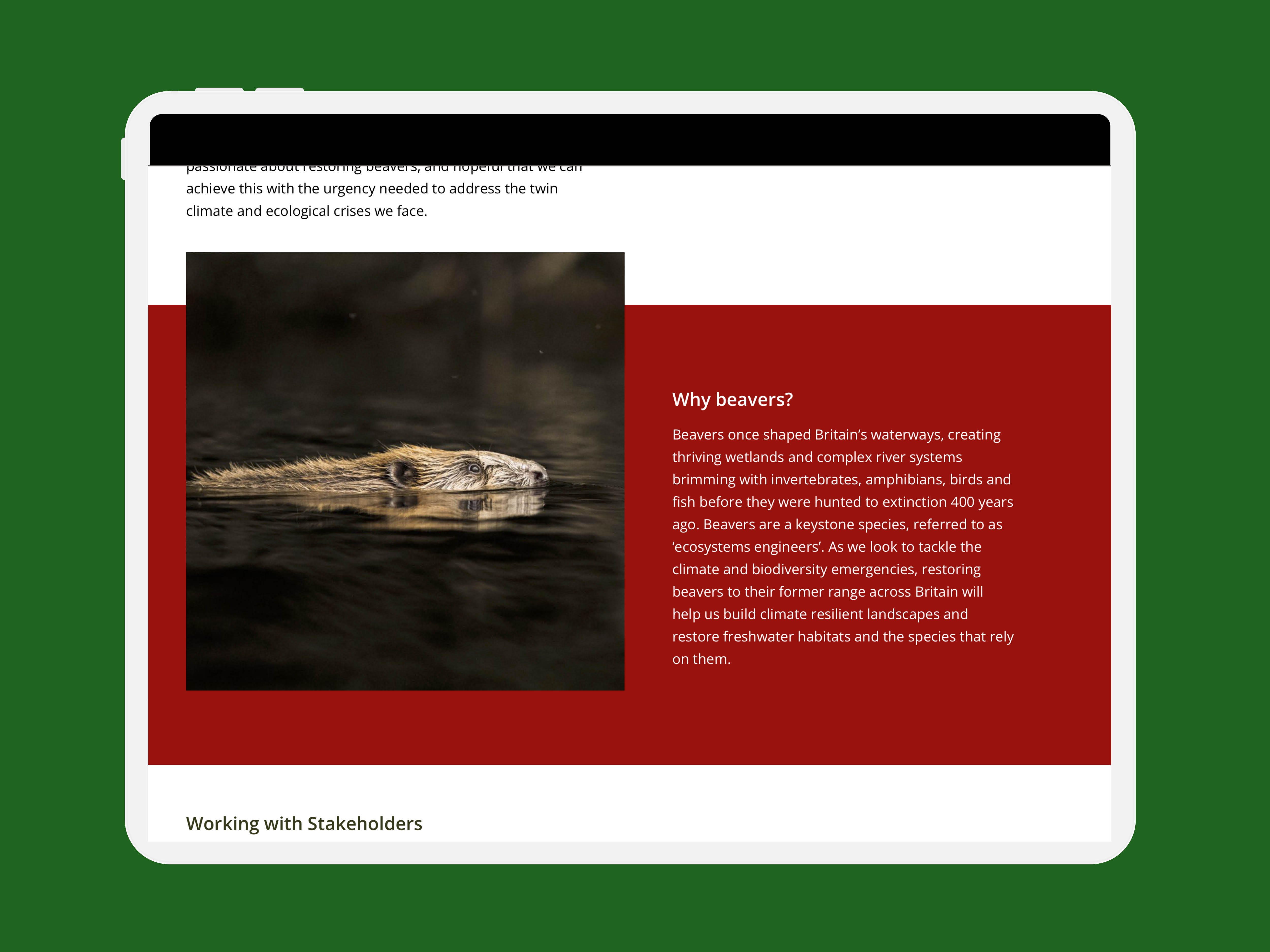 We delivered a new website for the Beaver Trust, a UK nature restoration charity dedicated to helping people live alongside beavers to support rebuilding ecosystems and strengthen climate resilience at a time of ecological and climate crisis.